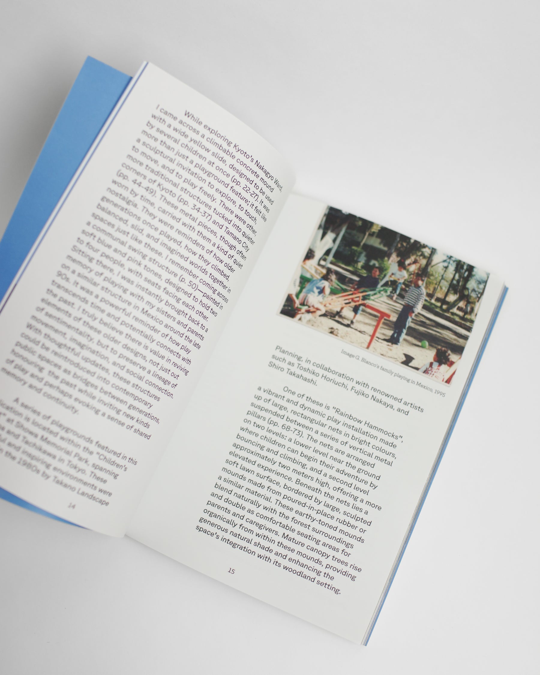 Landscapes of Play: A Collection of Imaginative Spaces in Japan is a self-published book exploring Japan’s unique and influential approach to outdoor play design, beginning with Mitsuru Senda’s pioneering of the “play apparatus” concept of the 1960s and extending to more contemporary play environments at the Showa Memorial Park in Tokyo. Through a combination of photography, research and personal reflections, it documents how these environments invite children and adults to play in ways that transcend conventional designs.