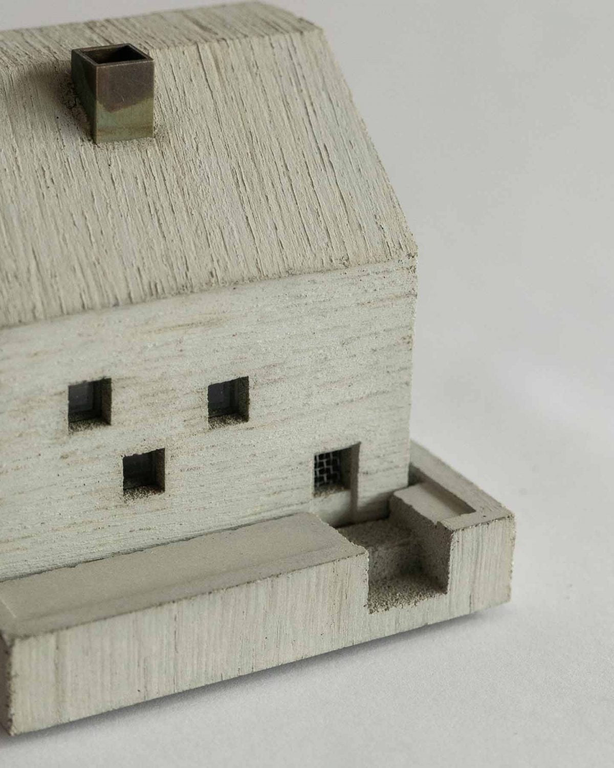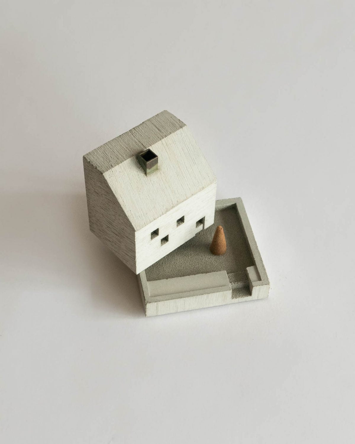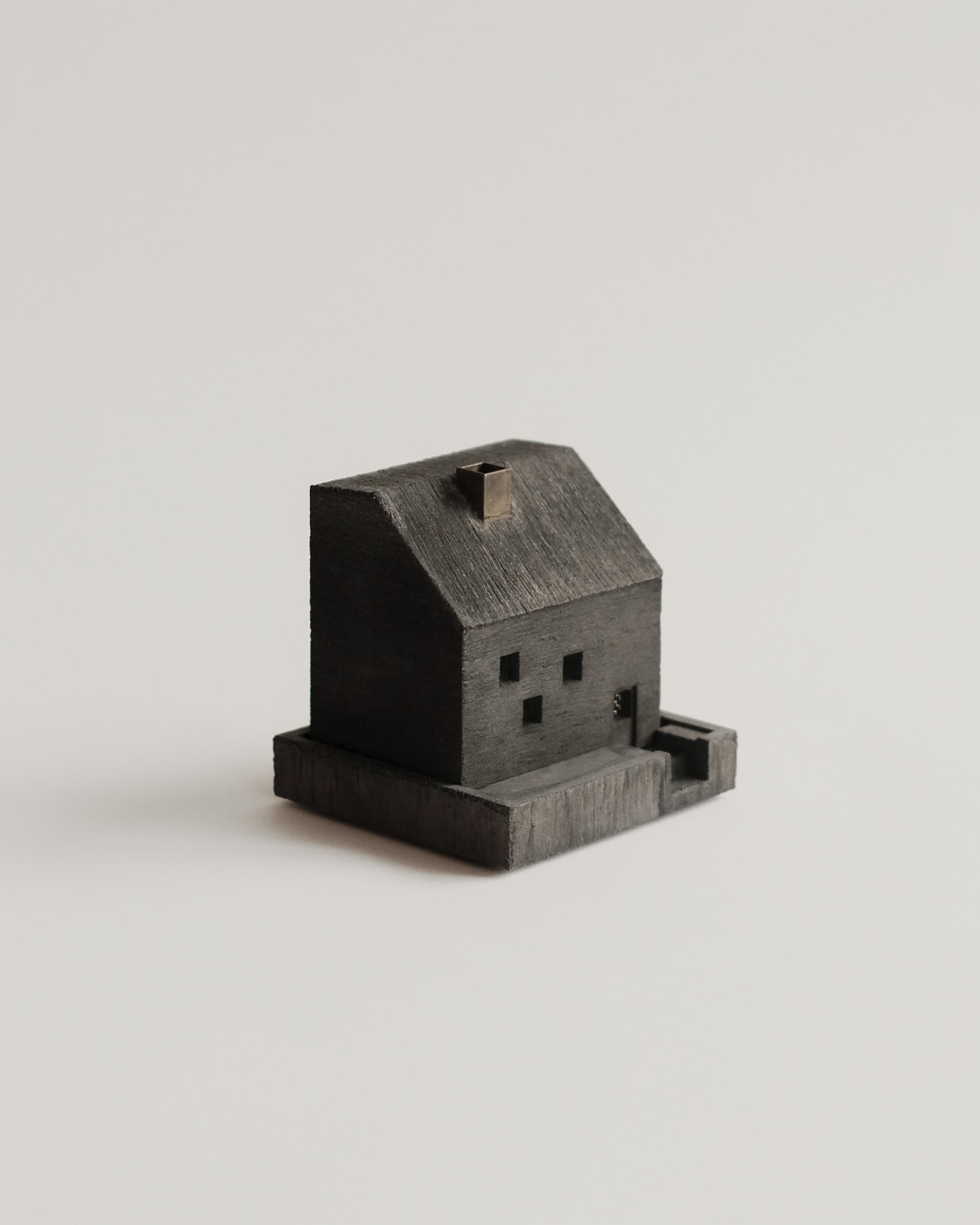 Handmade in Kyoto, Japan and designed by Nobuhiro Sato, these little mortar houses reflect the charming details of everyday life. This can be seen in the textural variations in the wood grain used in the forming process, the meticulous window glass and fences, and the incense smoke rising from each tiny chimney.