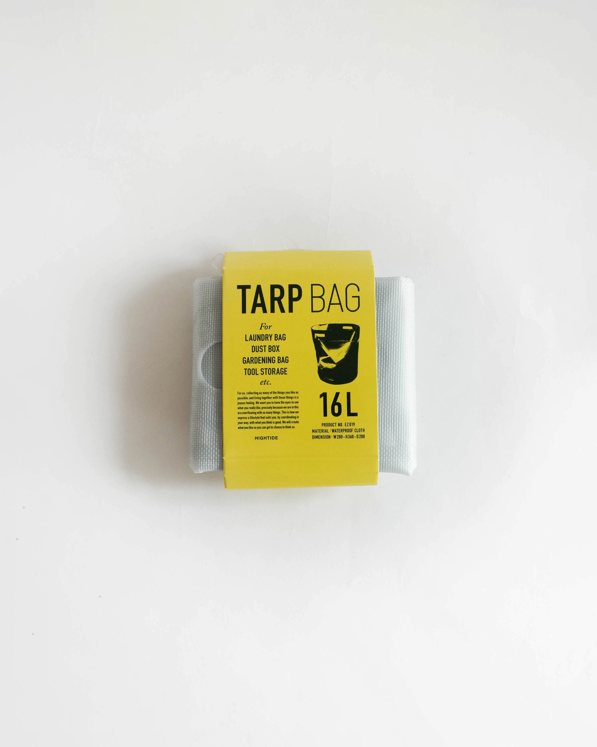 A heavy duty water-resistant round bag made of PVC tarpaulin by Hightide. Suitable for use as a laundry bag, dust box, gardening bag, tool storage, etc.