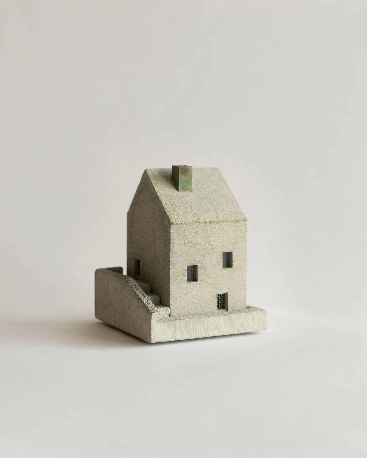 Handmade in Kyoto, Japan and designed by Nobuhiro Sato, these little mortar houses reflect the charming details of everyday life. This can be seen in the textural variations in the wood grain used in the forming process, the meticulous window glass and fences, and the incense smoke rising from each tiny chimney.